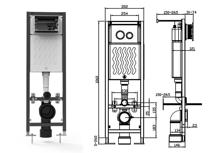Le réservoir encastré CJ726 est une solution à commande frontale conçue pour une optimisation de l'espace et une grande polyvalence. Avec ses dimensions compactes (120 mm d'épaisseur, 1100 mm de hauteur et 350 mm de largeur), il s'intègre parfaitement aux salles de bains modernes, permettant un gain de place précieux tout en préservant la fonctionnalité.
